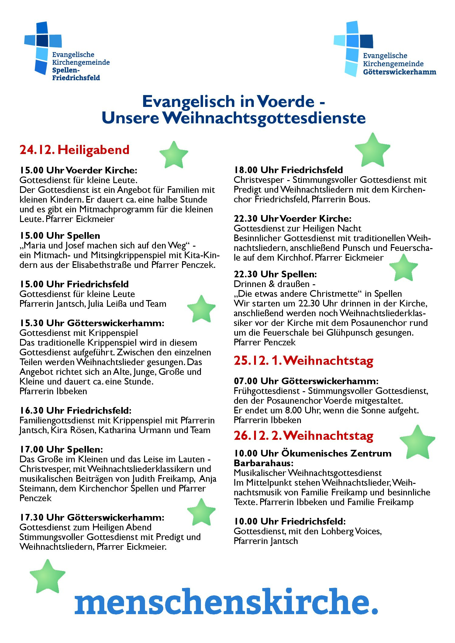 Seelsorge und die Verkündigung von Gottes Wort bleiben ebenso Mittelpunkt der Arbeit wie soziales und kulturelles Engagement für Voerde: Kindergärten, Familienbildung, Musik in den Kirchen, die ortsübergreifende Arbeit der Diakonie z.B. mit dem Zweitwaren-Kaufhaus KadeDi. Dabei baut die Gemeinde auf einer guten Basis auf, wie Presbyteriums-Vorsitzender Thomas Schröder erläuterte: