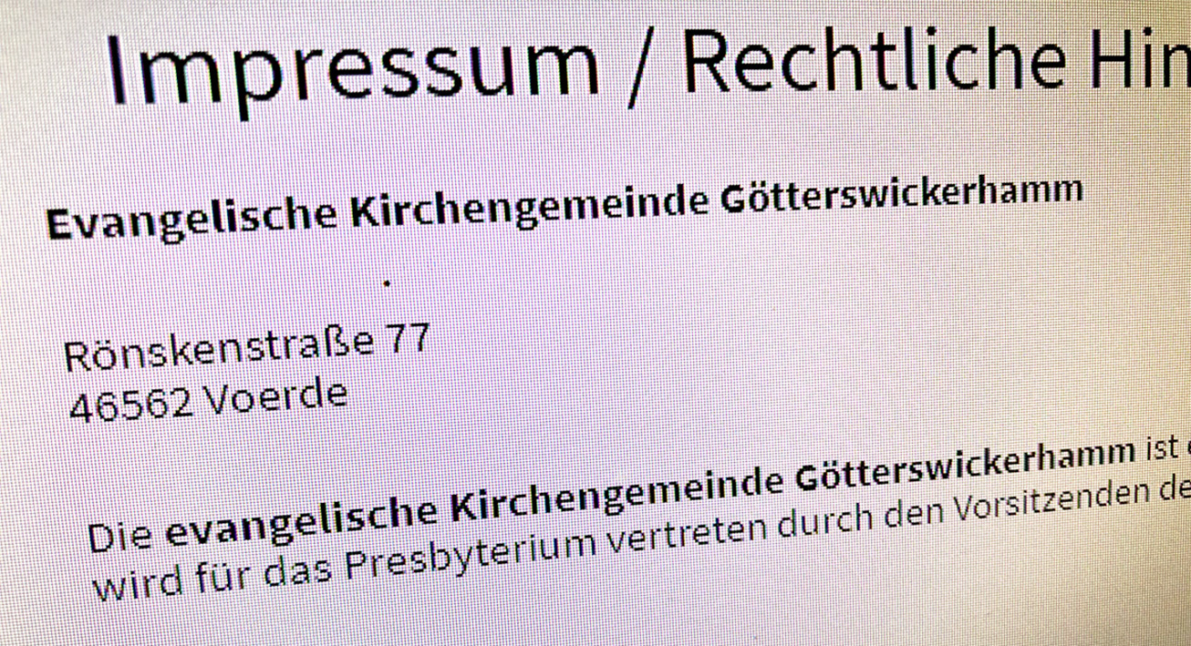 Die evangelische Kirchengemeinde Götterswickerhamm ist eine Körperschaft des öffentlichen Rechts und wird für das Presbyterium vertreten durch den Vorsitzenden des Presbyteriums: