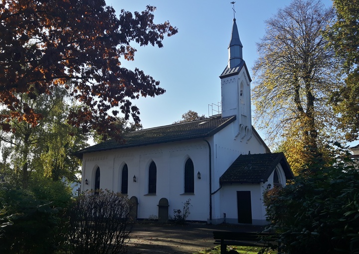Als „kleine Kirche“ kennt man sie in der Regel. Sie bietet etwa 100 Menschen Platz und wird deshalb gern für Trauungen und Jubiläumsfeiern genutzt. Etwa 100 Mitglieder zählte die damalige Gemeinde, als am 4.12.1859 die Kirche eingeweiht wurde (1924 war sie auf 700 Mitglieder gewachsen). Sie entstand auf den Grundmauern einer viel älteren Kirche, die Genoveva Maria von Syberg 1704 auf dem hochwasserfreien Ufer des damaligen Rheinverlaufs neben der alten Straße von Wesel nach Duisburg erbauen ließ.